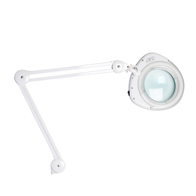 Lente d’ingrandimento professionale a 5 diottrie, ideale per i centri estetici. Dotata di braccio a pantografo con molle calibrate per garantire l’equilibrio in tutte le posizioni. La lente è in vetro ottico da 5 diottrie, con comodo sportellino copri lente. La struttura è in acciaio e il morsetto permette di utilizzarla su qualsiasi piano.