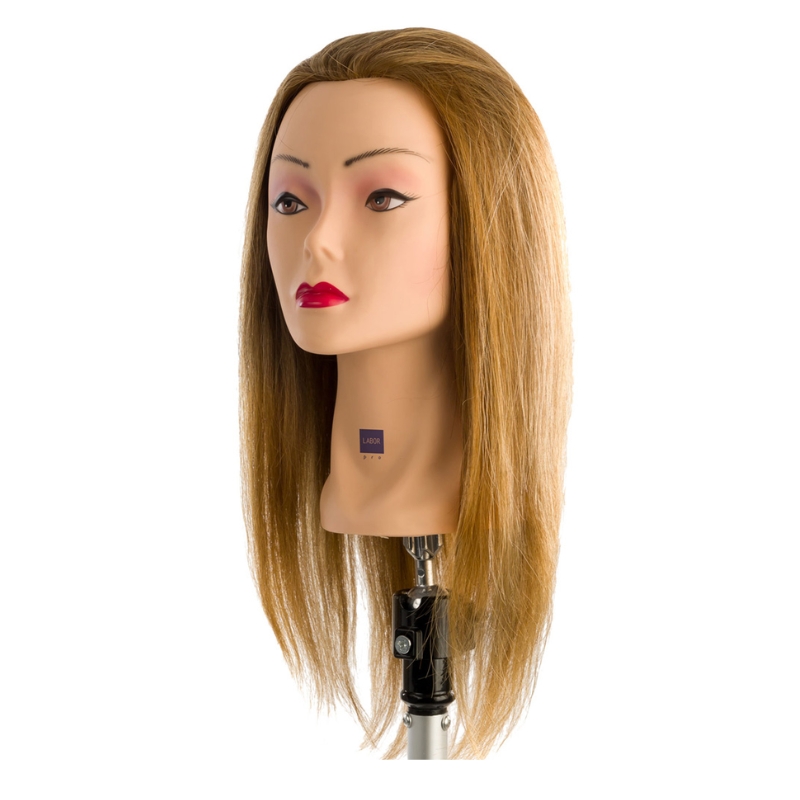 Testa studio media Labor Pro capelli mix: 60% capelli umani e 40% fibra sintetica. Consigliata per taglio e piega anche con ferro e piastra a temperature inferiori a 170 gradi. Non garantita per colorazioni, permanenti e taglio a sfilzino.